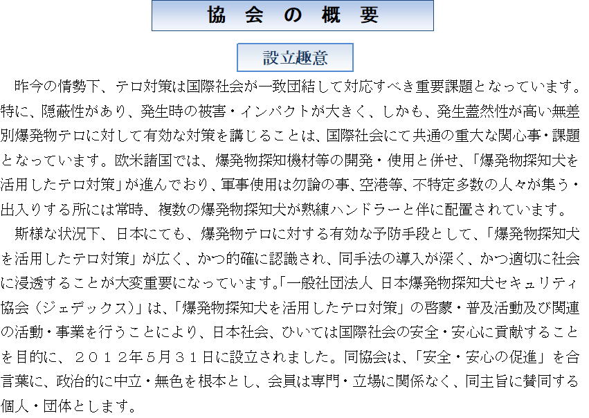 (一社)日本爆発物探知犬セキュリティ協会(通称JEDeCS )